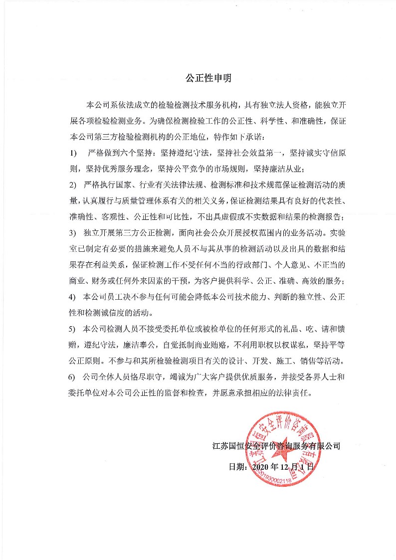 公正性及保密性申明